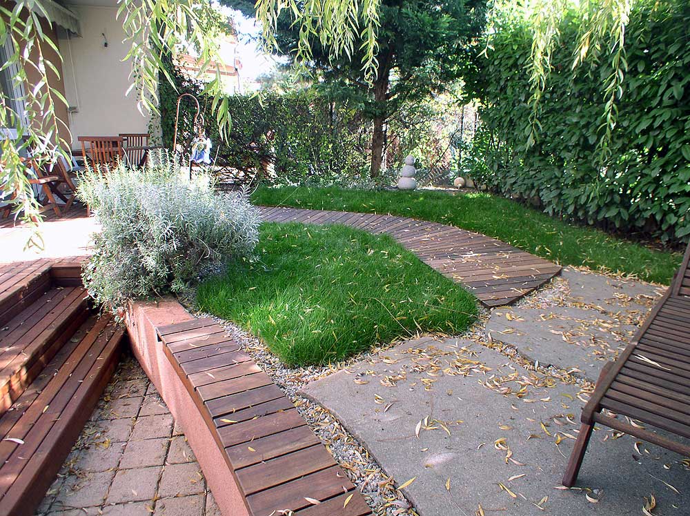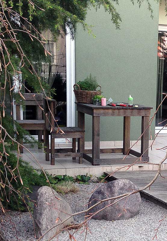 Place to relax in the garden with wooden details